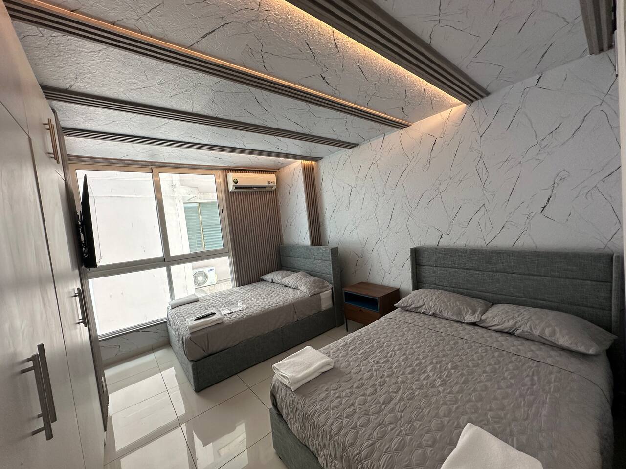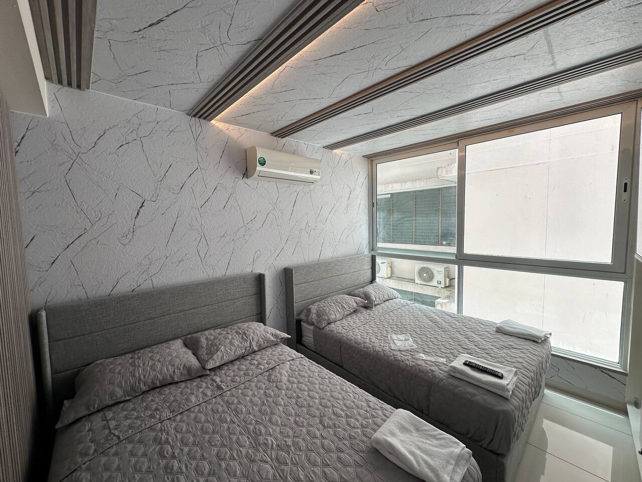 4Bed Room Suite Master Bedroom - 1 King Bed Room# 2 - 2 Full Beds Room# 3 - 2 Full Beds Room# 4 - 1 Full Bed All the Rooms include: -A/C -SMART TV -CLOSET SPACE Bathrooms: - 3 Full bathrooms Kitchen: Fully Equipped kitchen Wifi: High Speed Wifi in all the Apartment. Furniture: Brand New state of the art furniture . Balcony. Cribs & Additional Mattresses (Available). Building Includes: - High Speed Elevator. - Stairs. - Security: Gated Security and Camaras. - Roof top Terrace, includes Jacuzzi, sun deck, bathroom. - Free Parking inside the property. And much more! .