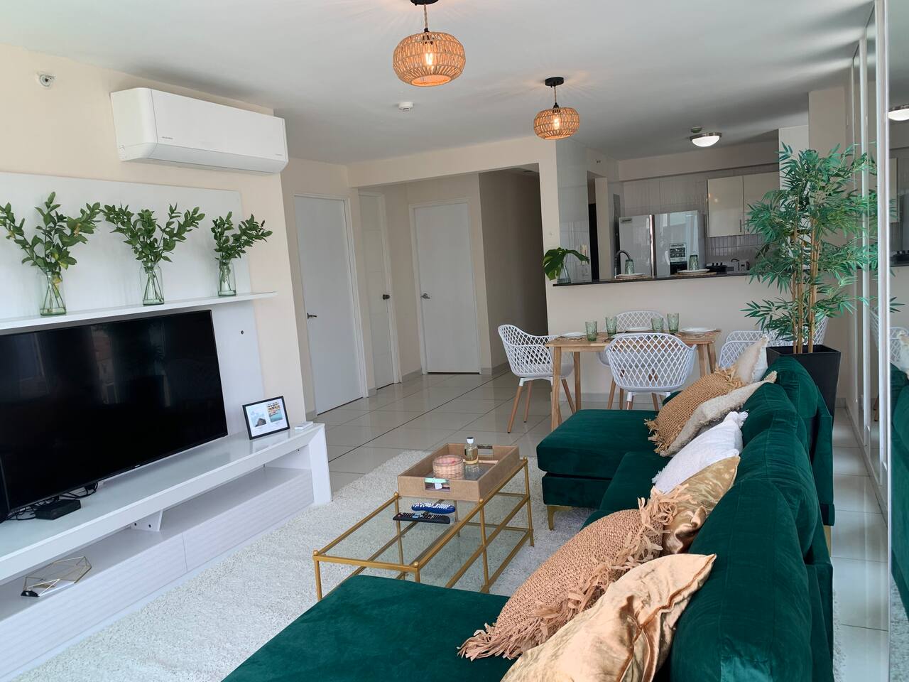 Includes smart tv in all the rooms , and living room!